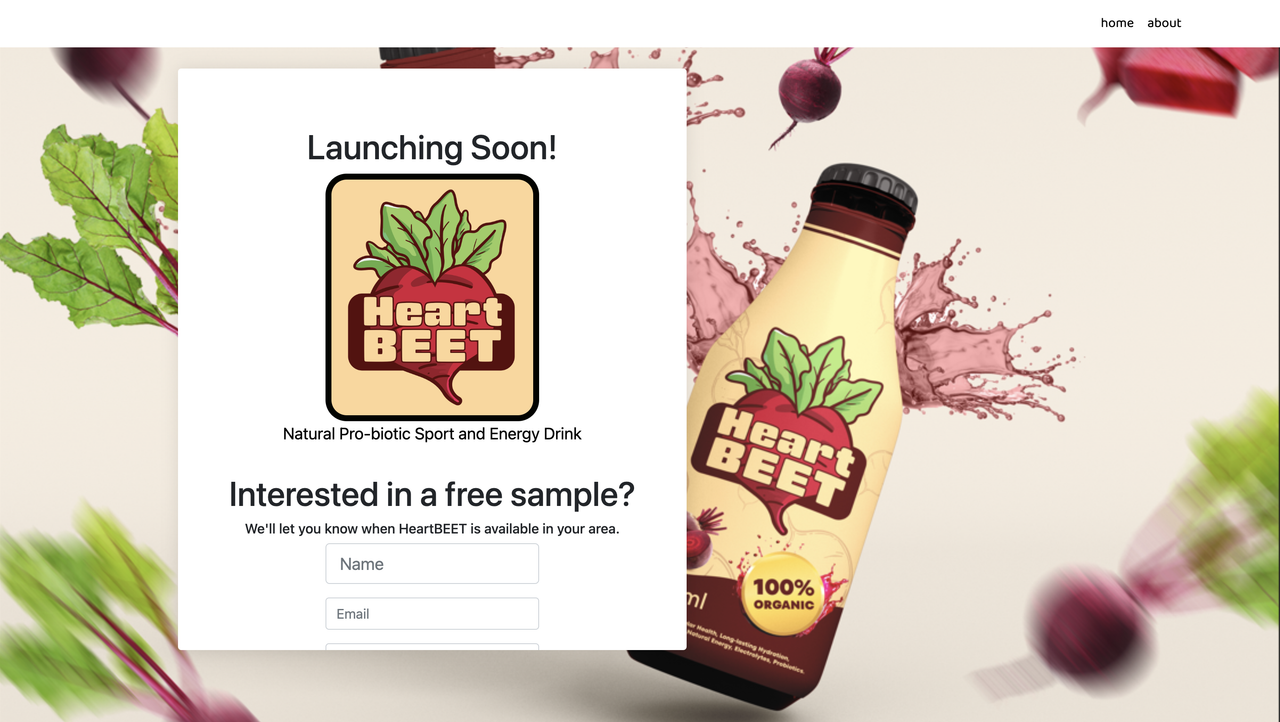 This web application was developed using HTML, CSS, and JavaScript. The primary purpose of the application is to gather information on whether or not people are interested in a new drink product. The frontend of the application is designed to be user-friendly and visually appealing, ensuring a smooth experience for visitors as they interact with the form and submit their details.